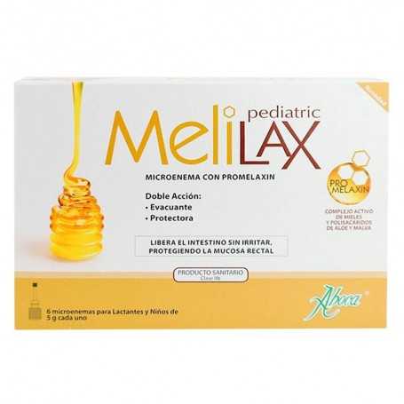 Melilax pediátrico ejerce una acción evacuante, protectora y lenitiva de la mucosa rectal. La doble acción de Melilax se obtiene gracias a PROMELAXIN, un complejo de mieles de néctar de melaza cuidadosamente seleccionadas y elaboradas en función de su contenido en monosacáridos, polisacáridos y melanoidinas, enriquecido con la fracción polisacarídica del Aloe y la Malva. Melilax Pediátrico, además, gracias a sus propiedades similares a las del moco y a su viscosidad, protege la mucosa rectal durante el paso de las heces. Estas propiedades especiales, junto con su acción antioxidante, confieren al producto la capacidad de proteger y suavizar la mucosa.