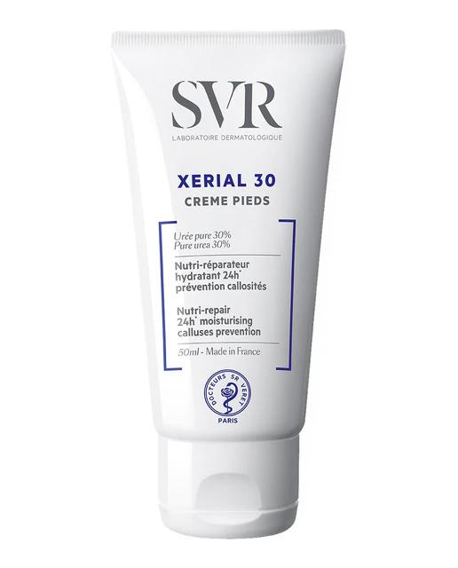La Crema para pies Xerial SVR es una crema nutri-reparadora que proporciona hidratación durante 24 horas y previene la formación de callosidades. Contiene un 30% de urea pura, lo que la hace ideal para el tratamiento de pies muy secos y dañados. Su fórmula está enriquecida con urea pura patentada, que cuenta con una acción antiqueratolítica reforzada, así como con vitamina B5 y alantoína, que protegen y alivian la piel de forma inmediata.