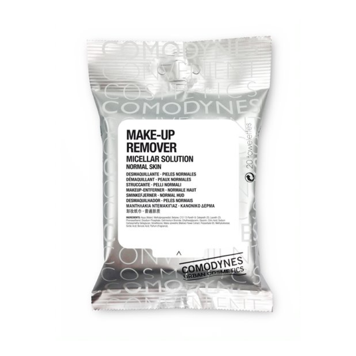 Las Toallitas Make-Up Remover Micellar Solution para piel normal de Comodynes sustituyen a la leche, tónico y desmaquillador de ojos. Eliminan impurezas y maquillaje, dejando la piel suave, limpia, tonificada e hidratada. Cada paquete contiene 20 toallitas.